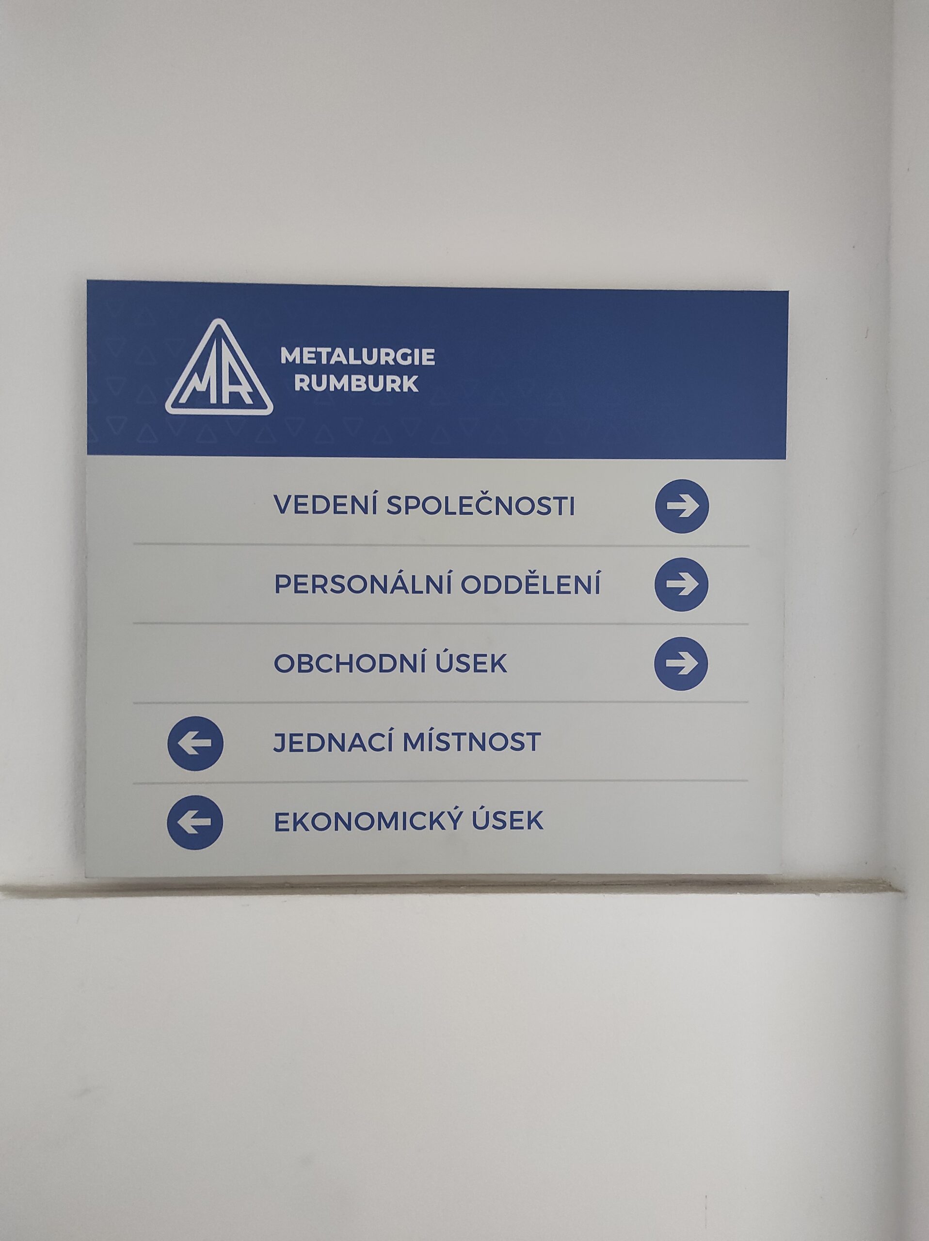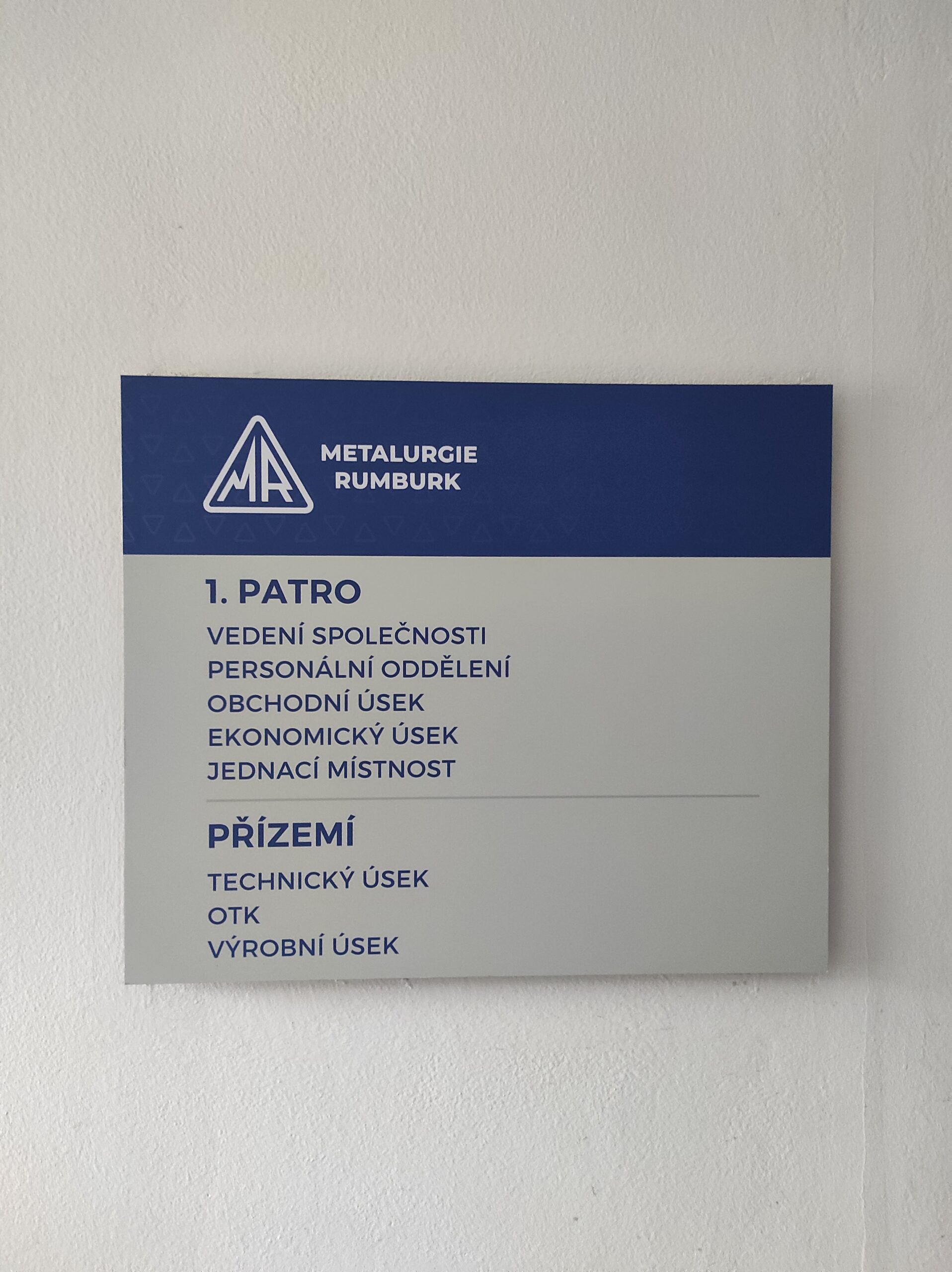 Navrhujeme a vyrábíme orientační systémy pro firmy, administrativní budovy, průmyslové areály i veřejný prostor.